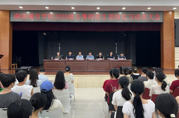 本网讯(通讯员 宋一恒 吴文倩)7月5日上午,我校在学生活动中心召开2020级公费师范生顶岗实习动员大会。副校长雷存喜出席会议并讲话,教务处、教师教育学院、人文学院/大学英语教学部、理学院相关负责人、实习指导老师以及全体2020级公费师范生参加会议。会议由教务处负责人主持。