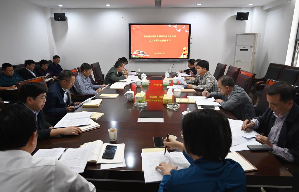 本网讯(通讯员 周文娟)9月26日,学校党委理论学习中心组在办公楼二会议室举行2023年第十次集体学习,集中学习习近平总书记关于教育的重要论述和习近平法治思想。校党委书记汤放华主持会议,党委理论学习中心组全体成员参加会议。