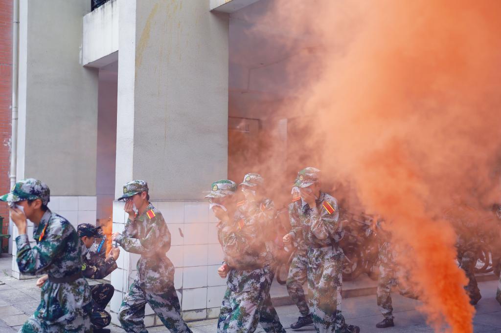 消防疏散演练进军训 6400名新生齐修安全“第一课”(视频)