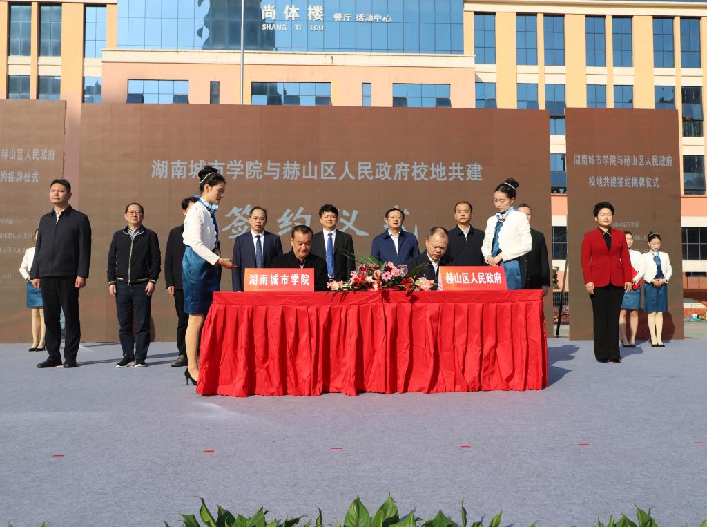 仪式上,我校党委书记汤放华、赫山区区委书记周卫星为众博官方网址附属梓山湖学校揭牌;副校长雷存喜与赫山区副区长赵嘉喜签订校地共建框架协议书。