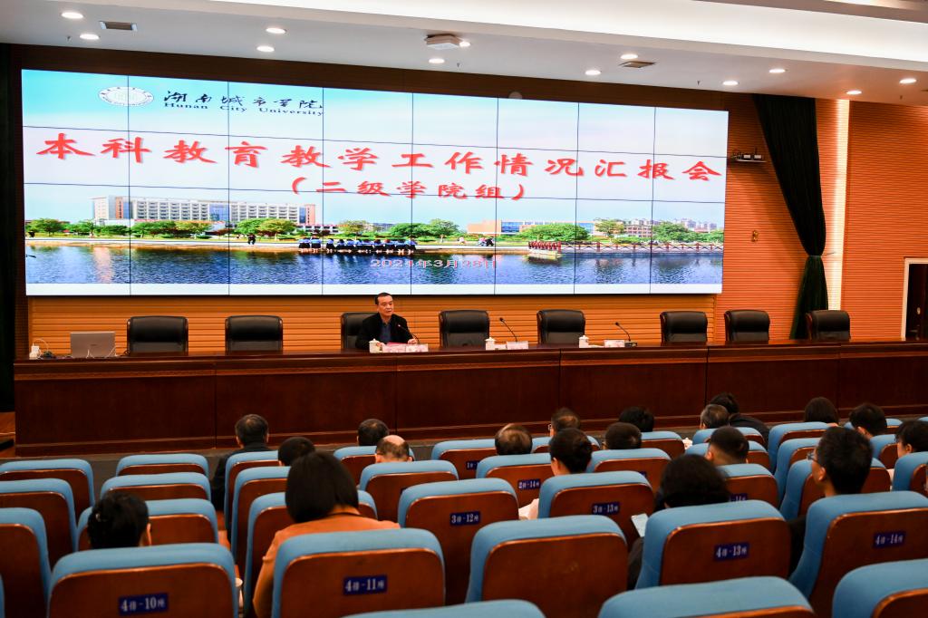 本网讯(通讯员 周术明)3月28日下午,学校在图书馆报告厅召开二级学院本科教育教学工作情况汇报会。校党委书记汤放华出席会议并讲话,校长何振点评二级学院审核评估工作,在家校领导出席会议。会议由副校长雷存喜主持。