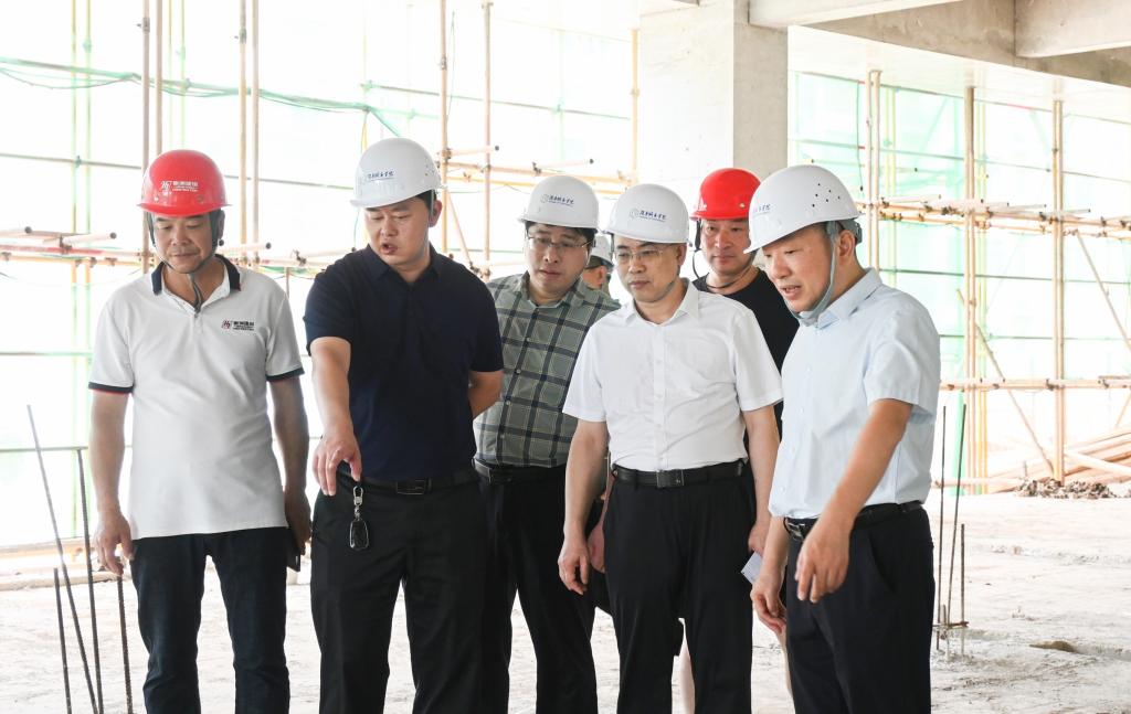 在学生公寓25栋建设项目的施工现场,何振一行一边实地察看施工质量和工程进度,一边听取基建管理处、施工单位对项目建设情况的汇报,详细了解了项目施工过程中的难点问题、施工质量、安全生产、进度等情况。学生公寓25栋于今年3月正式开工,总建筑面积19999平方米,可容纳学生1700人。截至目前,已完成四层主体施工。