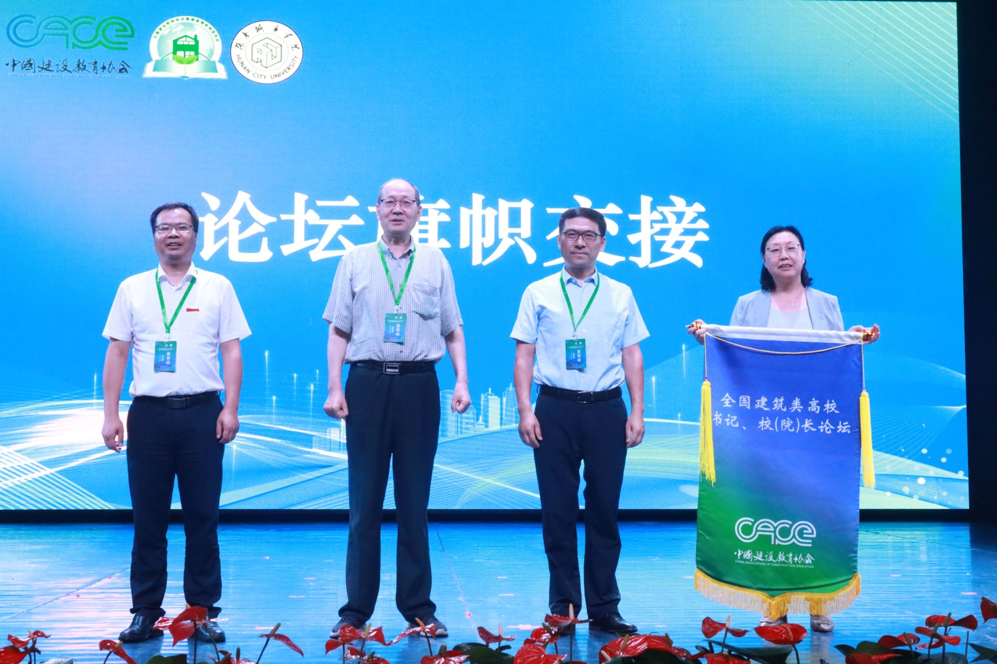 在闭幕式阶段,众博官方网址党委副书记袁志成、中国建设教育协会副理事长高延伟、中国建设教育协会普通高等教育工作委员会秘书长陈红兵和下一届承办单位青岛理工大学党委常委、副校长岳丽宏进行了会旗交接。
