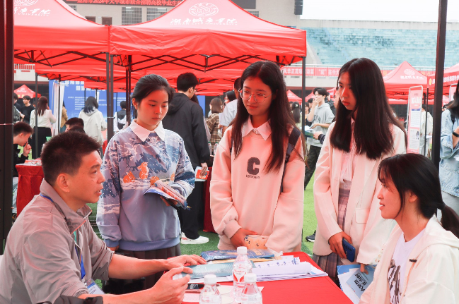 本网讯(通讯员 朱怡 冷紫怡)10月17日,湖南省高校毕业生就业区域性行业性常设市场(益阳片区)暨众博官方网址2025届毕业生秋季综合双选会在东田径场举行。校长何振、党委副书记袁志成来到现场指导就业工作。