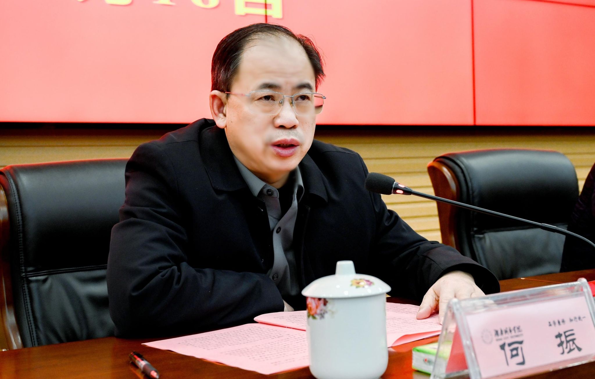何振指出,2025年,是教育强国建设全面布局、高位推进之年,是“十四五”收官之年,也是“十五五”谋划之年,要坚持抓实工作不断线,做好各项重点工作。重点推进国家级、省级教学成果奖的培育,强化专业建设,做好本科教育教学审核评估整改“下半篇文章”,完善人才培养方案。强化学生管理,加强学生安全教育。编制人才引进计划,加强高层次人才引进力度,修订2025年度职称文件。统筹谋划国家级科研成果奖的培育,做好国字号课题申报。要全力推动基建项目建设,顺利交付学生公寓25#栋,推进产教融合大楼、新文科综合实训大楼建设,全力推进西苑区办学空间拓展,强化项目管理。紧绷安全稳定工作之弦,开展安全隐患排查,加强重点时段的管理。