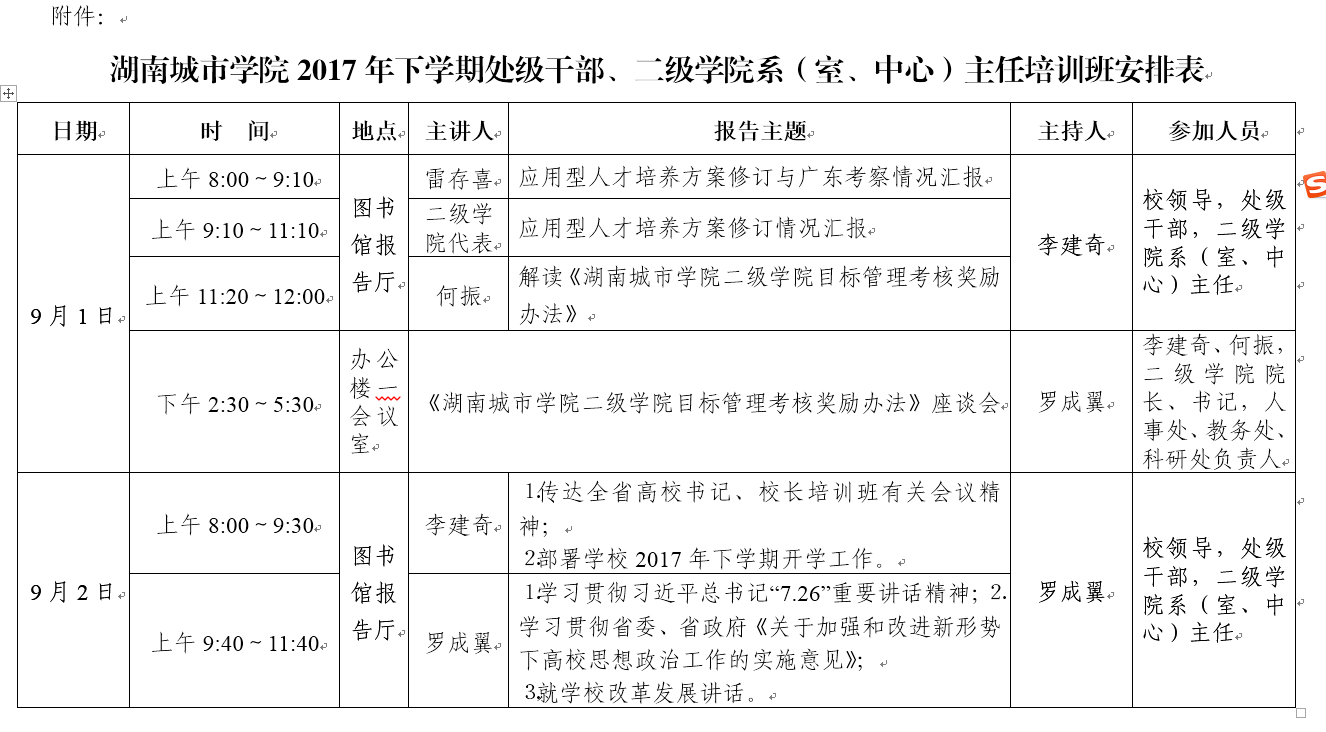 具体培训安排见《众博官方网址2017年下学期处级干部、二级学院系(室、中心)主任培训班安排表》。
