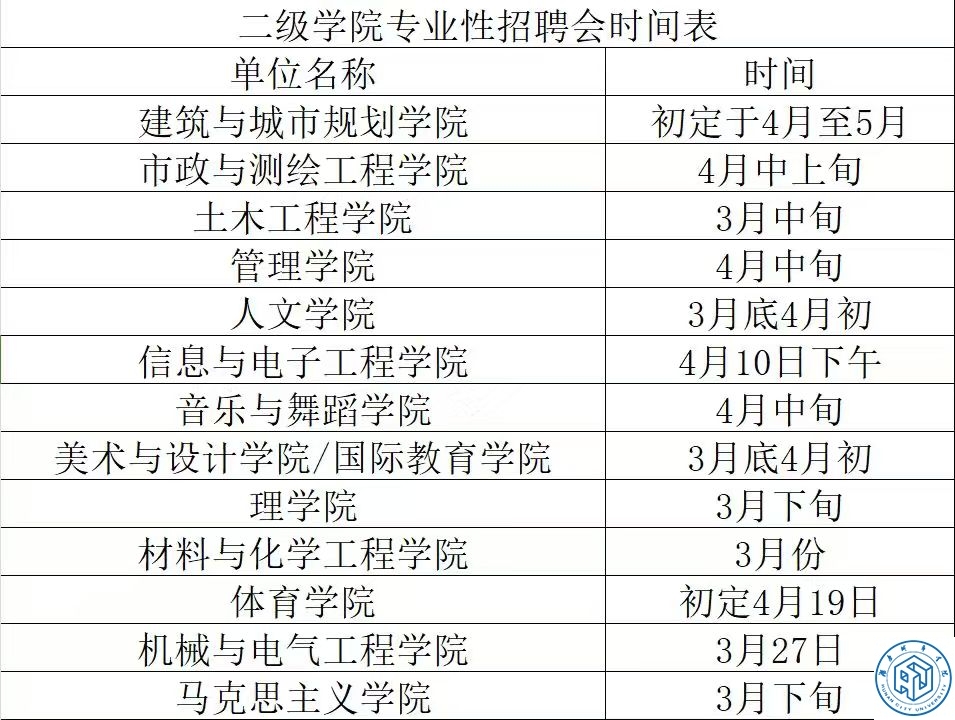 自2025年3月3日开始,我校将陆续举办二级学院专业性招聘会,具体时间安排如下。如有更改,可关注“众博官方网址就业信息网”信息。