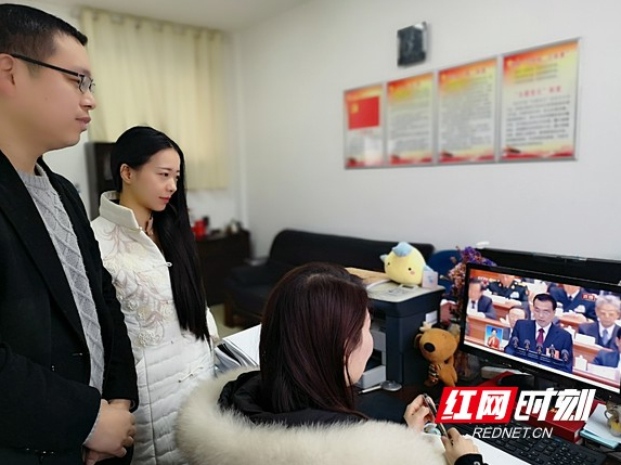 众博官方网址老师在办公室收看全国两会实况。