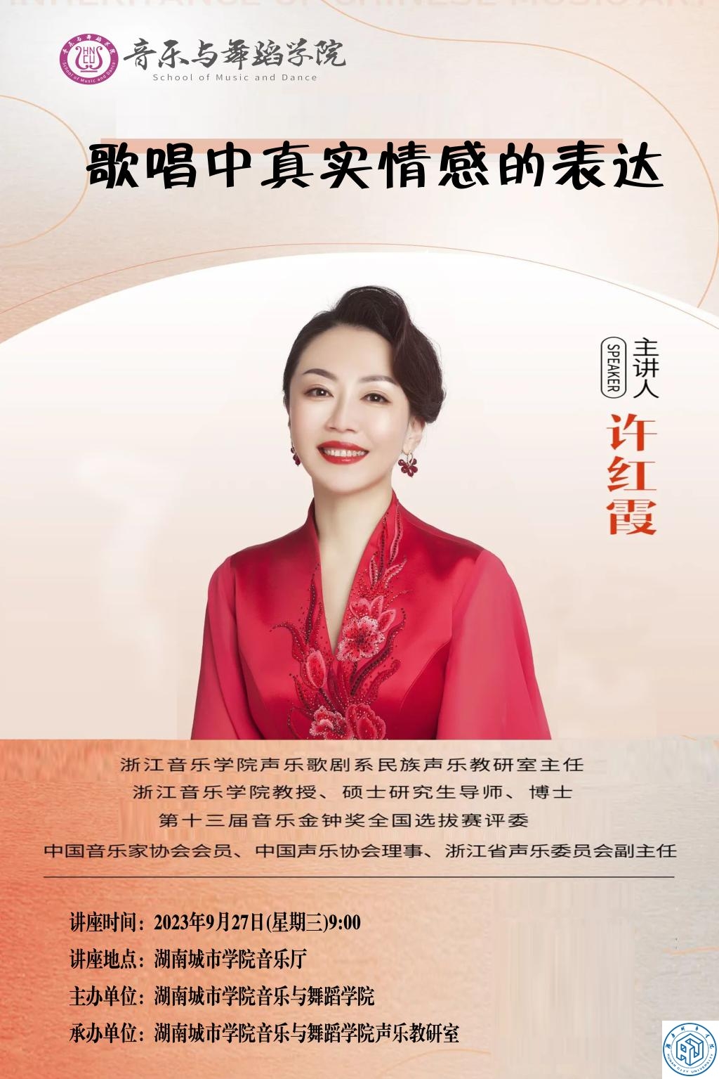 2023年9月27日,浙江音乐学院声乐歌剧系民族声乐教研室主任许红霞教授莅临我校,为我校师生带来题为《歌唱中真实情感的表达》专题讲座,通过现场教学点评的形式展开了专题学术交流。
