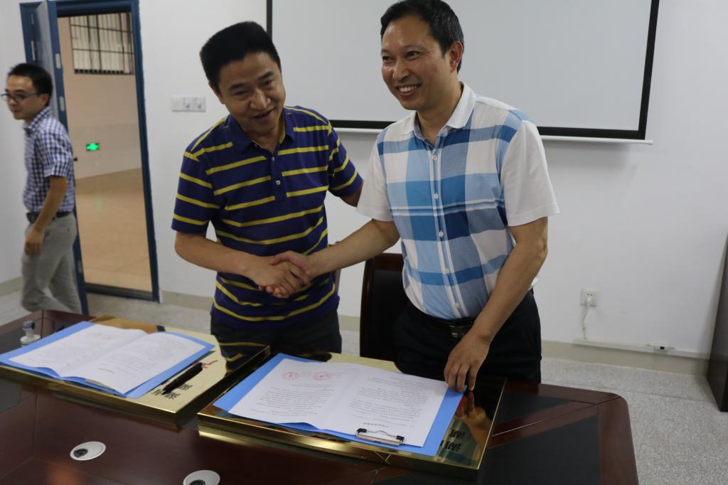 文明才院长发表了热情洋溢的致辞,对长期与我院保持良好的合作关系,为我院科技创新和人才培养给予支持和帮助的三家高新企业表示衷心的感谢。3家企业与机电工程学院就合作事宜进行了商讨和交流,在深化合作、谋划长远发展达成广泛共识。签约仪式上,谭献良副校长指出,机电工程学院高度重视对接行业企业,服务地方经济,坚持紧贴市场、面向企业,协同创新,有力推动了机械学科的快速发展,为地方企业发展提供了智力支持和技术支撑。谭校长强调,共建产学研基地,有助于开展产教融合、校企合作,有助于双方优势互补,集成优势资源,提升创新能力和技术水平,把科研成果转化为企业生产力。谭校长要求,机电工程学院要以“竹林业产品及其设备协同创新中心”为平台,积极与企业合作,着力提升教学质量和科研水平,努力研发企业急需的关键技术,为地方企业服务。