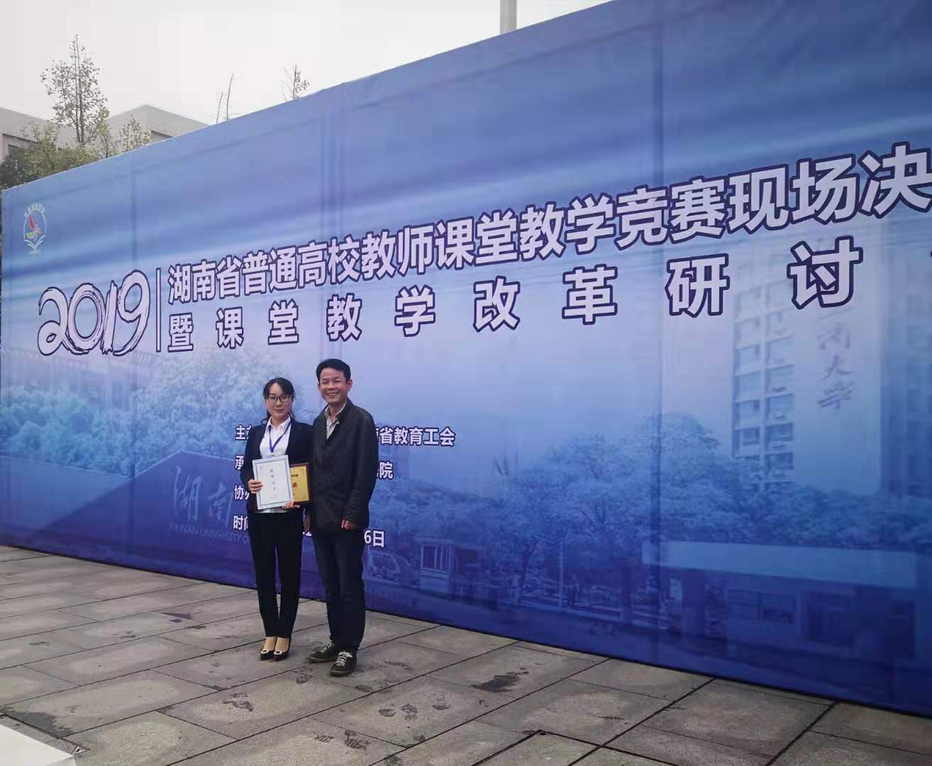 2019年10月26日,由湖南省教育厅、教育工会主办的2019年湖南省普通高校教师课堂教学竞赛决赛在湖南工商大学举行,我院张闻芳老师在决赛中以优异成绩喜获一等奖,并获得由湖南省教育工会授予的“湖南省普通高校教学能手”荣誉称号,为学校赢得了荣誉。