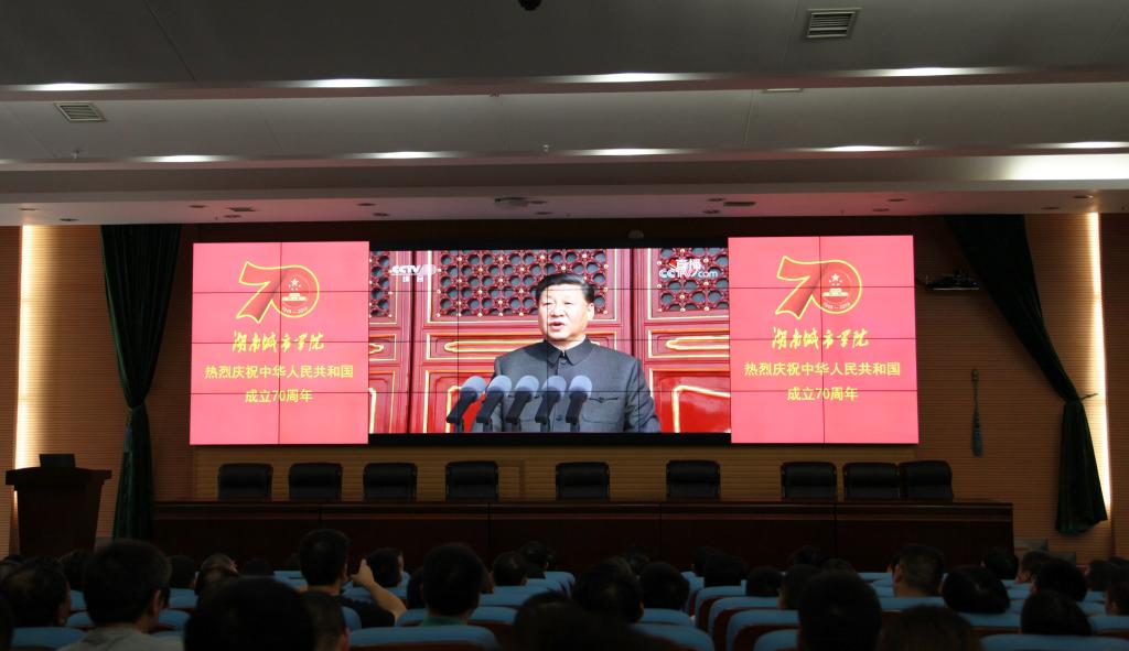(本网讯)“长安街上,三军列阵,铁甲生辉……”2019年10月1日上午,众博官方网址图书馆报告厅内传出央视主播雄浑有力之声。这是众博官方网址正在组织部分师生收看新中国成立70周年阅兵活动,其余师生也通过集中收看或者手机、电脑、电视等多种方式进行了收看。收看结束后,广大师生将千言万语,都化作真诚、质朴、美好的祝福:祝愿祖国母亲生日快乐,中国万岁!