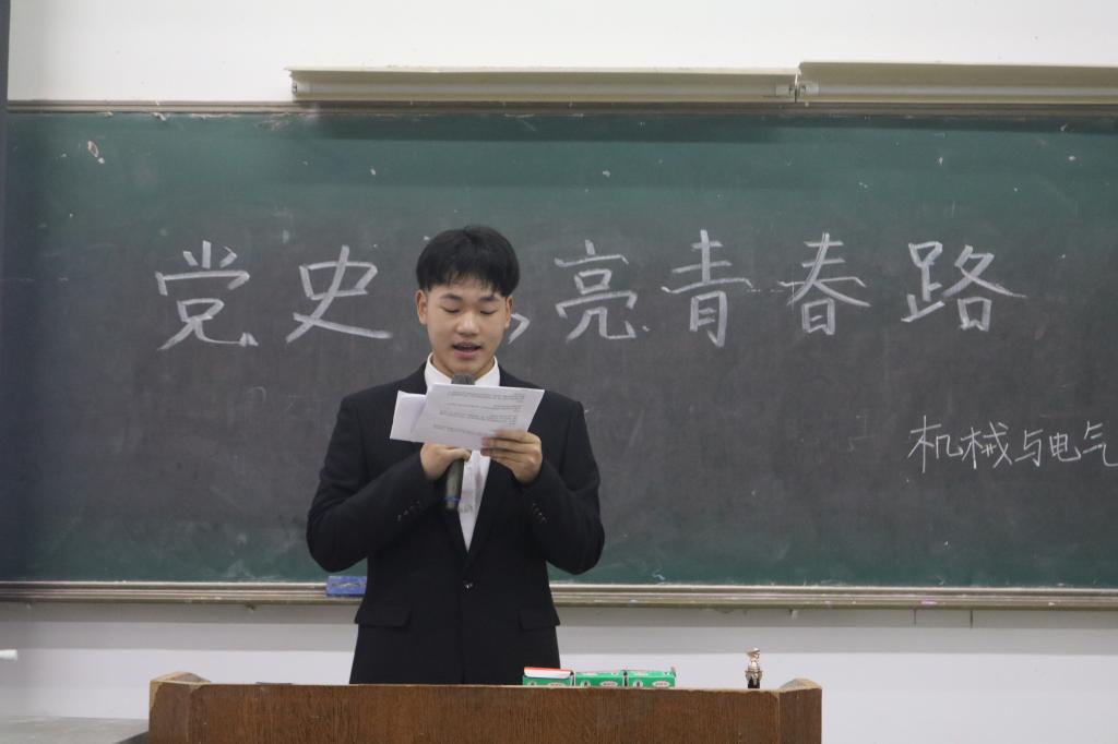 风雨百年,青史可鉴。为庆祝中国共产党成立100周年,机械与电气工程学院于4月23日下午6:30在一教204举行“党史照亮青春路”主题演讲比赛。本次比赛的评委有机械与电气工程学院学工办主任、团委书记周文萍老师,院执行主席赵益民、院团委副书记李沁璇、徐煜、众博官方网址校学生会综合事务部文怡馨。